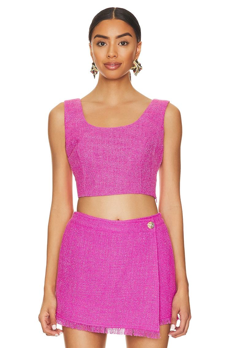 Bright pink lightweight tweed fabric meets a fitted tank silhouette with wide straps and a flattering scoop neckline. This cropped tank offers a modern, casual chic vibe perfect for warm spring and summer days. Ideal for casual outings, brunches, or vacation getaways, it pairs effortlessly with high-waisted shorts or skirts. The pullover style enhances comfort while maintaining a sleek look. Whether you're embracing streetwear trends or relaxed weekend wear, this Simone Tank blends texture and color for a standout piece in any wardrobe.