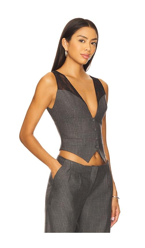 CEREN OCAK LACE DETAILED VEST TOP IN GREY.