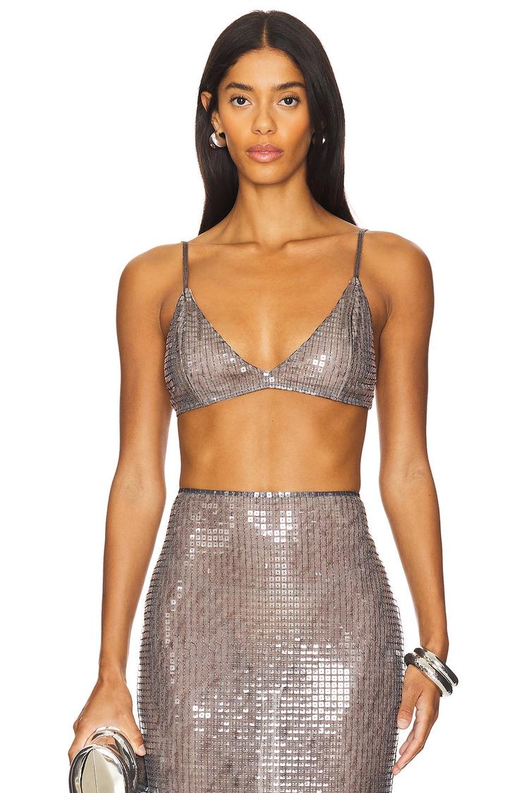 Shimmering metallic silver sequins cover this fitted bralette, creating a dazzling cropped silhouette perfect for summer nights. Featuring a V-neckline and delicate spaghetti straps, it offers a sexy, chic vibe enhanced by a back hook closure for a secure fit. Crafted from lightweight polyester satin fabric, this sequin top brings a trendy edge to your evening wardrobe. Ideal for nights out, parties, and girls' night events, it pairs effortlessly with high-waisted skirts or pants for a standout look that radiates confidence and style.