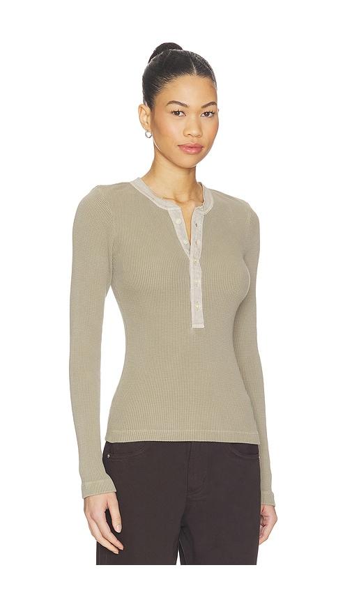 CITIZENS OF HUMANITY DREA WAFFLE HENLEY TOP IN OLIVE.