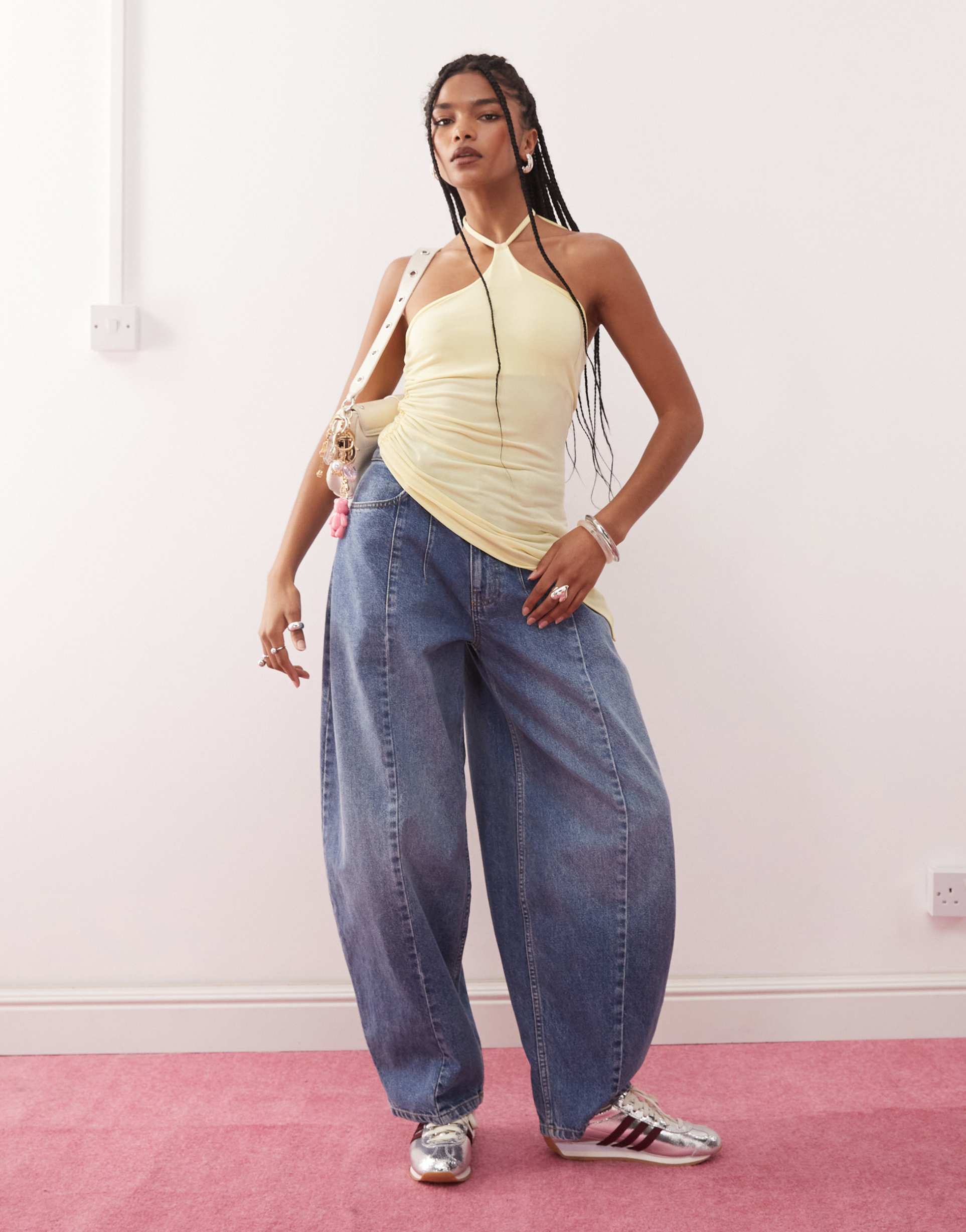 COLLUSION ASYMMETRIC HALTER NECK TOP IN YELLOW