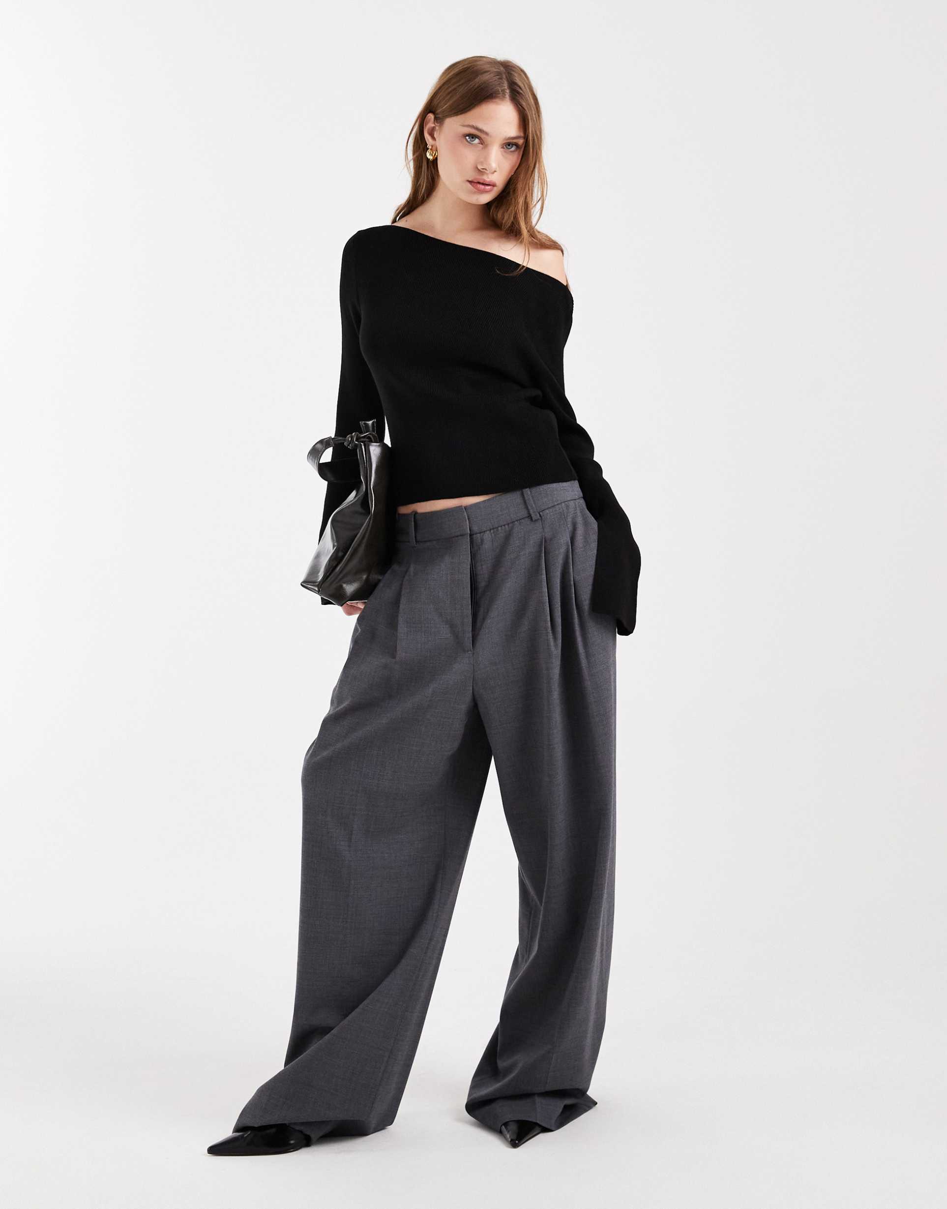 COLLUSION KNIT SLASH NECK LONG SLEEVE TOP IN BLACK