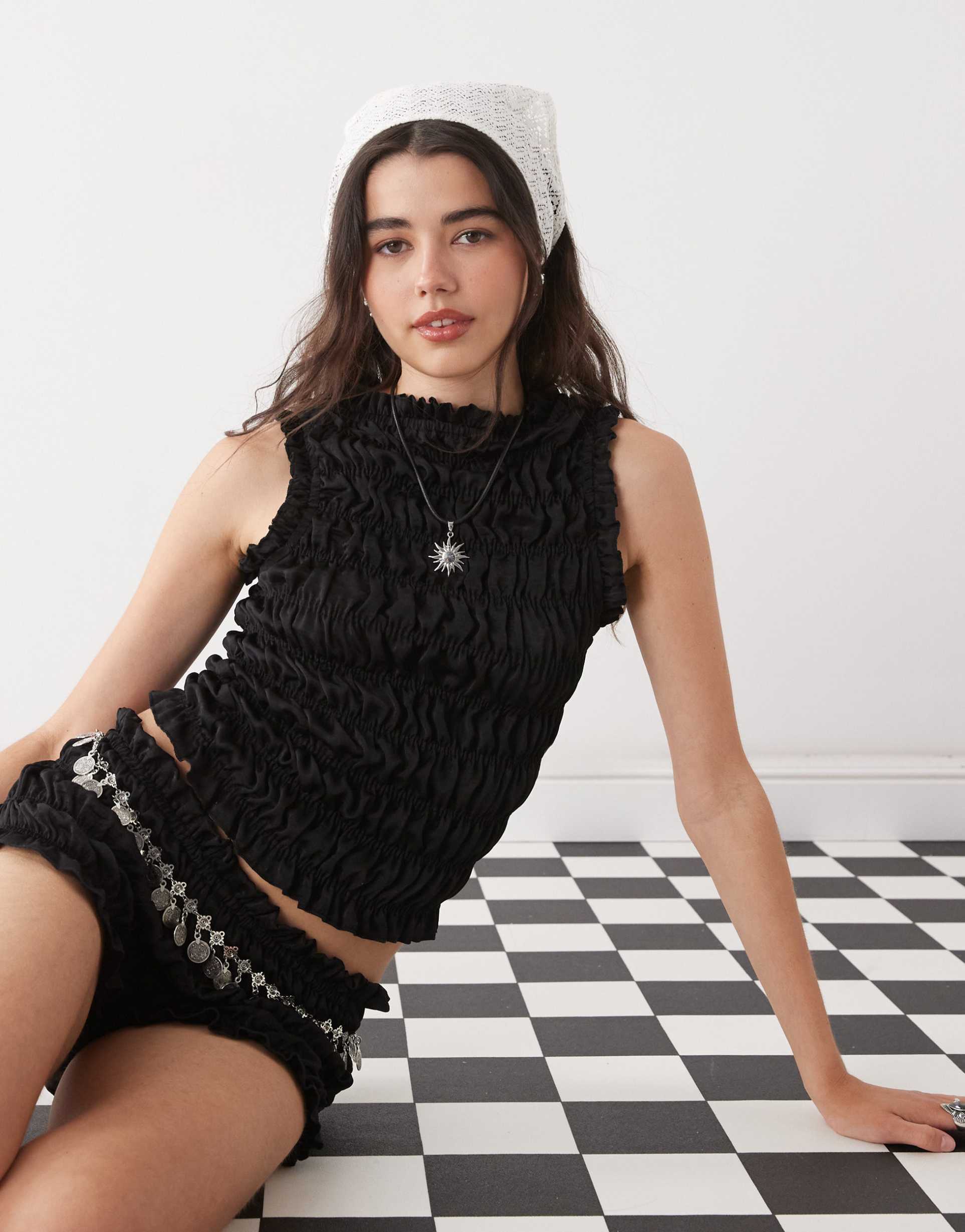 COLLUSION SATIN LOOK SHIRRED TANK TOP IN BLACK - PART OF A SET