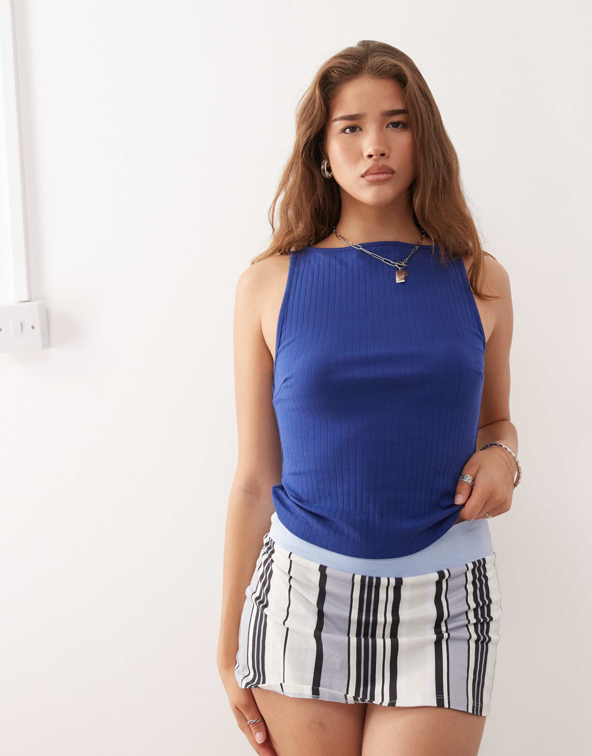 COLLUSION SLASH NECK RIBBED TANK TOP IN NAVY