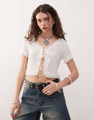 COLLUSION TIE FRONT FRILL TOP IN WHITE