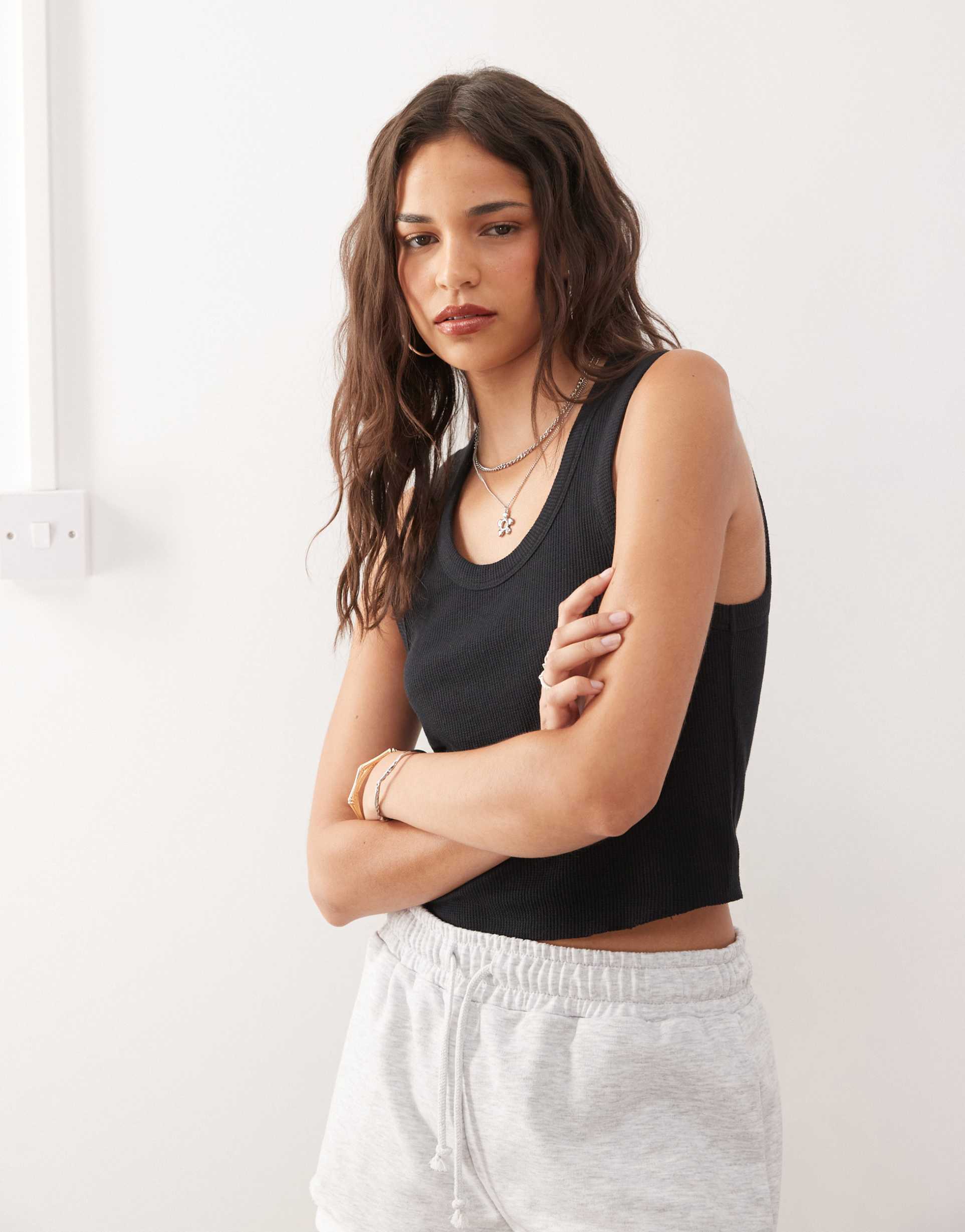 black waffle tank top