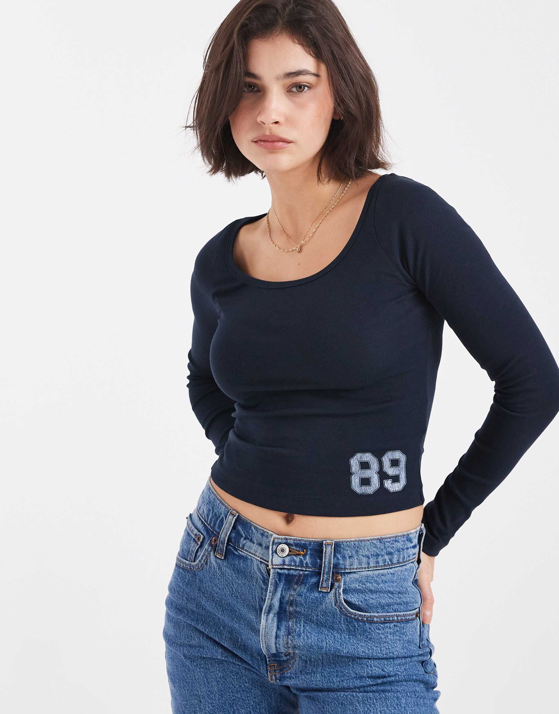 COTTON ON 89 GRAPHIC OFF THE SHOULDER TOP IN TOTAL ECLIPSE
