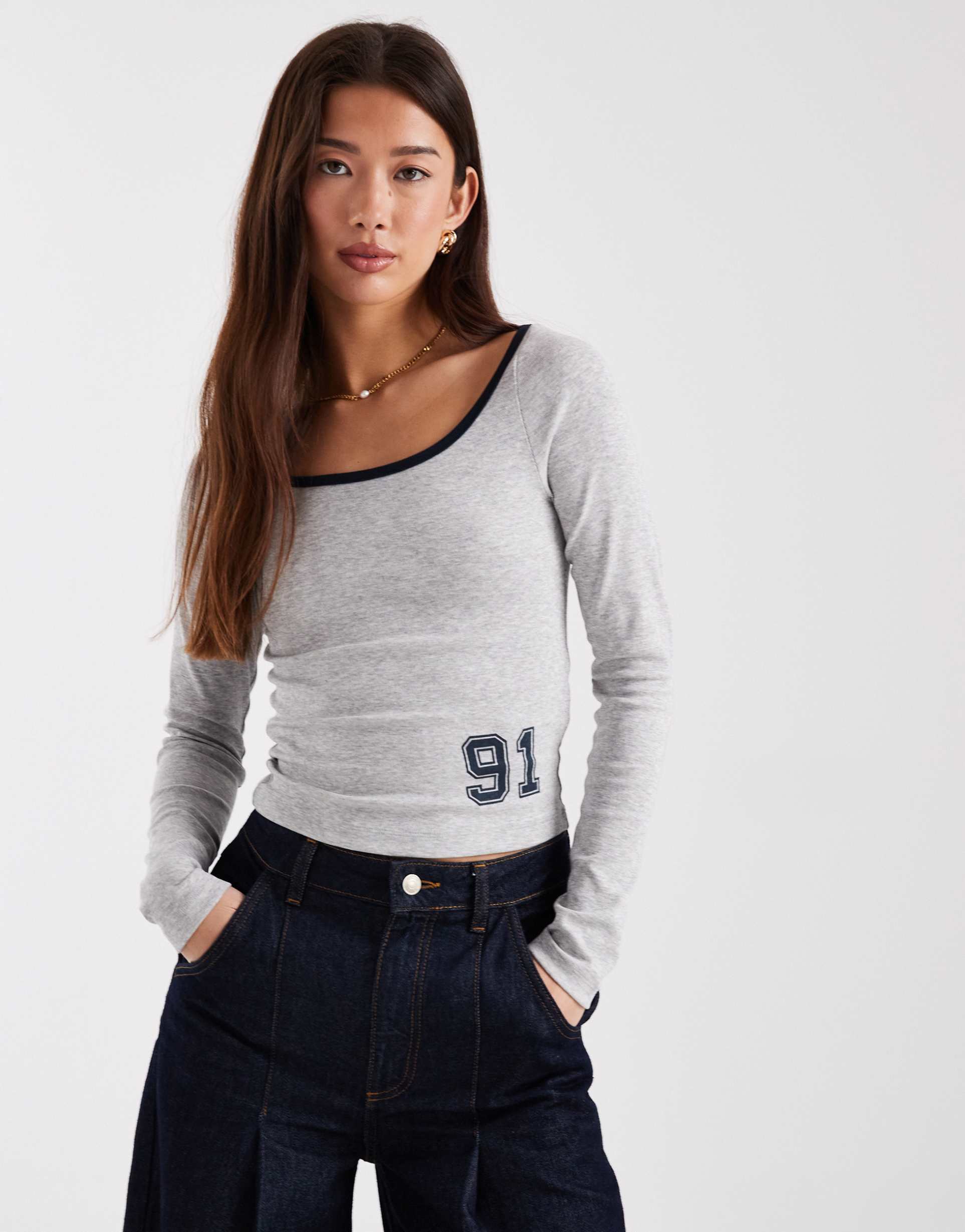 COTTON ON 91 GRAPHIC OFF SHOULDER TOP IN GRAY HEATHER