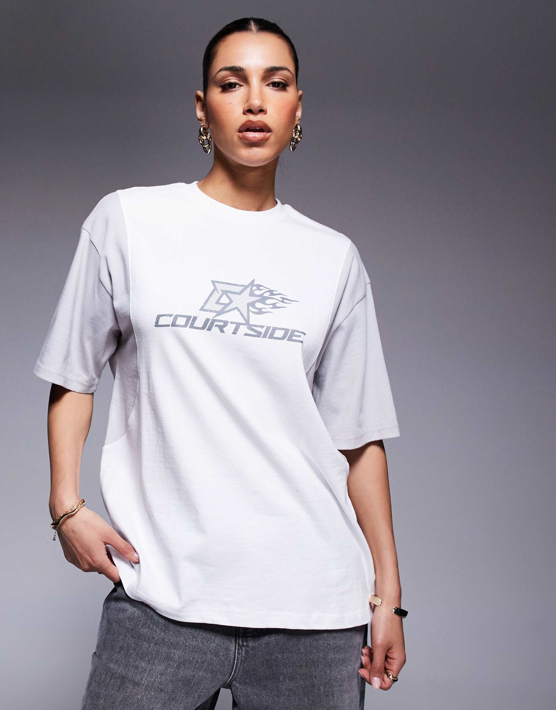 COURTSIDE MOTIF DETAIL RAGLAN TOP IN WHITE MULTI