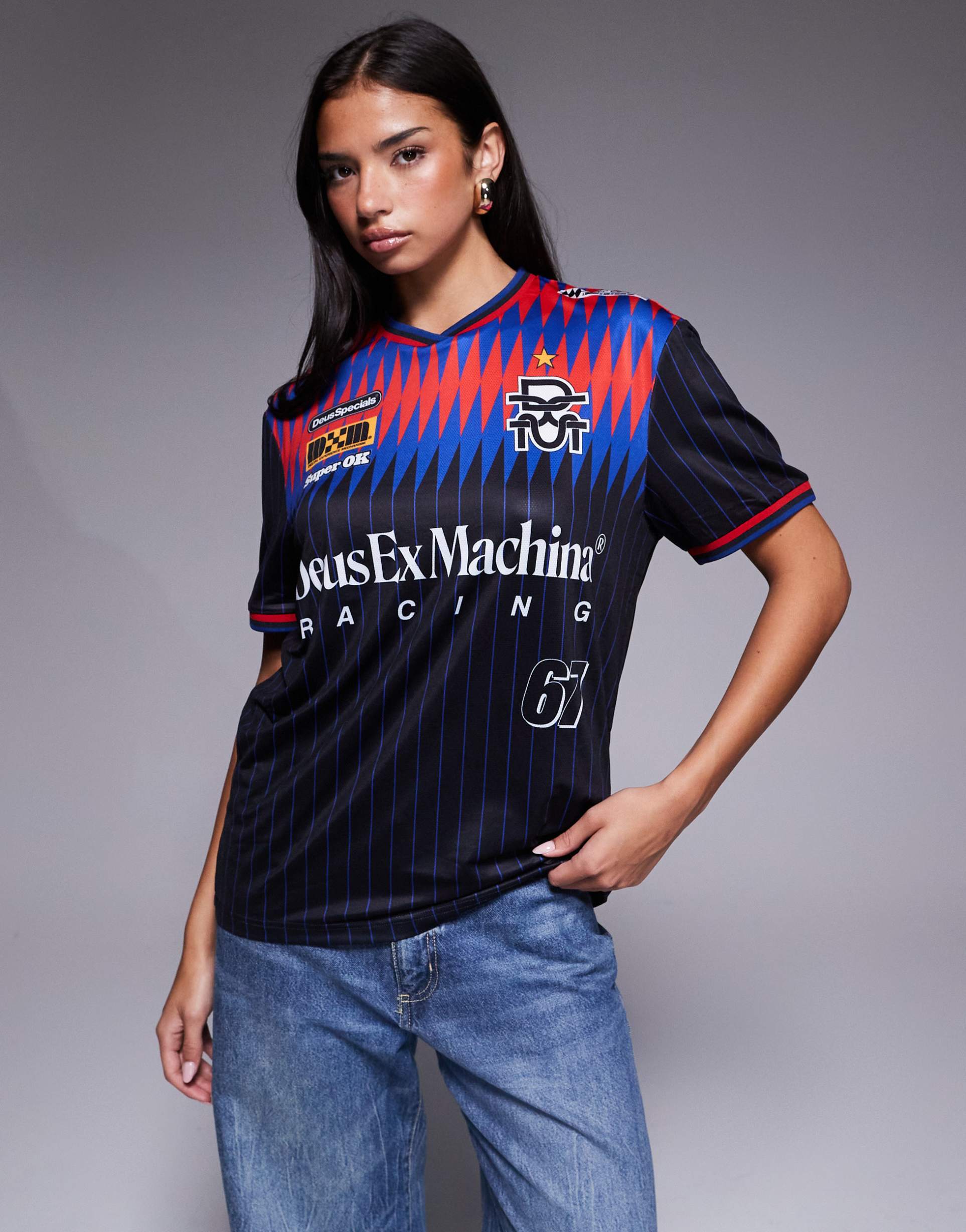 DEUS EX MACHINA BOURAS MOTO JERSEY TEE IN BLACK