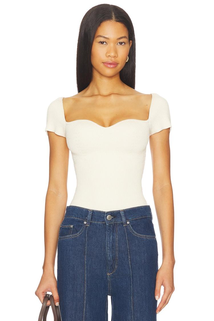 Soft stretch knit fabric and a flattering sweetheart neckline define this fitted cropped top, designed with short cap sleeves and a clean covered back. Its off-white hue offers timeless minimalist appeal, perfect for spring and summer wear. This versatile piece pairs effortlessly with denim or skirts, making it ideal for casual outings, everyday wear, or brunch dates. Machine washable and crafted with environmental consciousness, it balances comfort and style in a classic silhouette.
