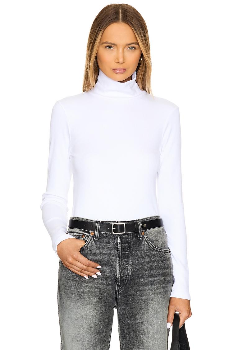 A sleek ribbed jersey fabric shapes this classic tank with a slim fit and hip-length hem. The clean white color paired with a sophisticated turtle neck and long regular sleeves creates a minimalist silhouette that’s perfect for layering or wearing solo. Crafted from a comfortable cotton-modal-spandex blend, it offers stretch and softness ideal for everyday casual wear, as well as polished workwear and business casual settings.