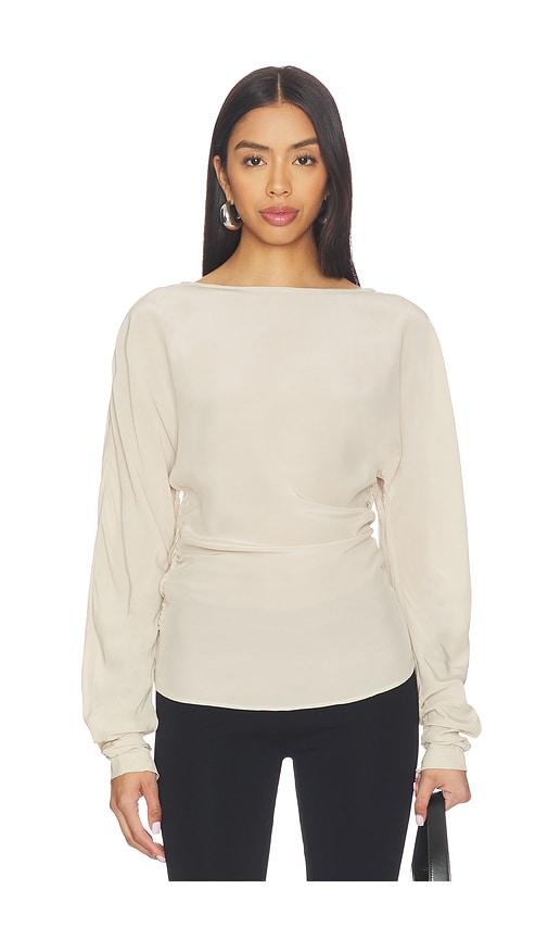 EAVES X JASMINE TOOKES AMARI OPEN BACK TOP IN BEIGE.