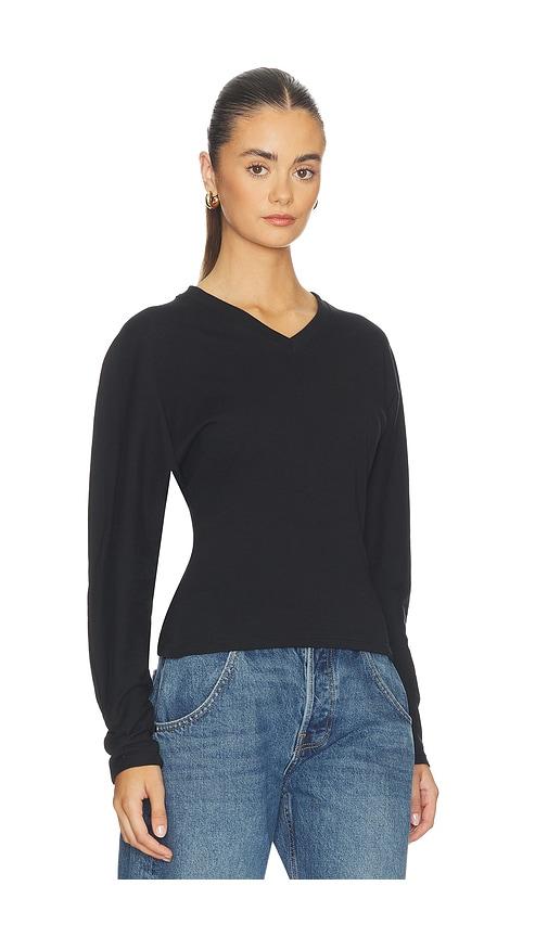 EB DENIM ACACIA V NECK LONG SLEEVE TOP IN BLACK.