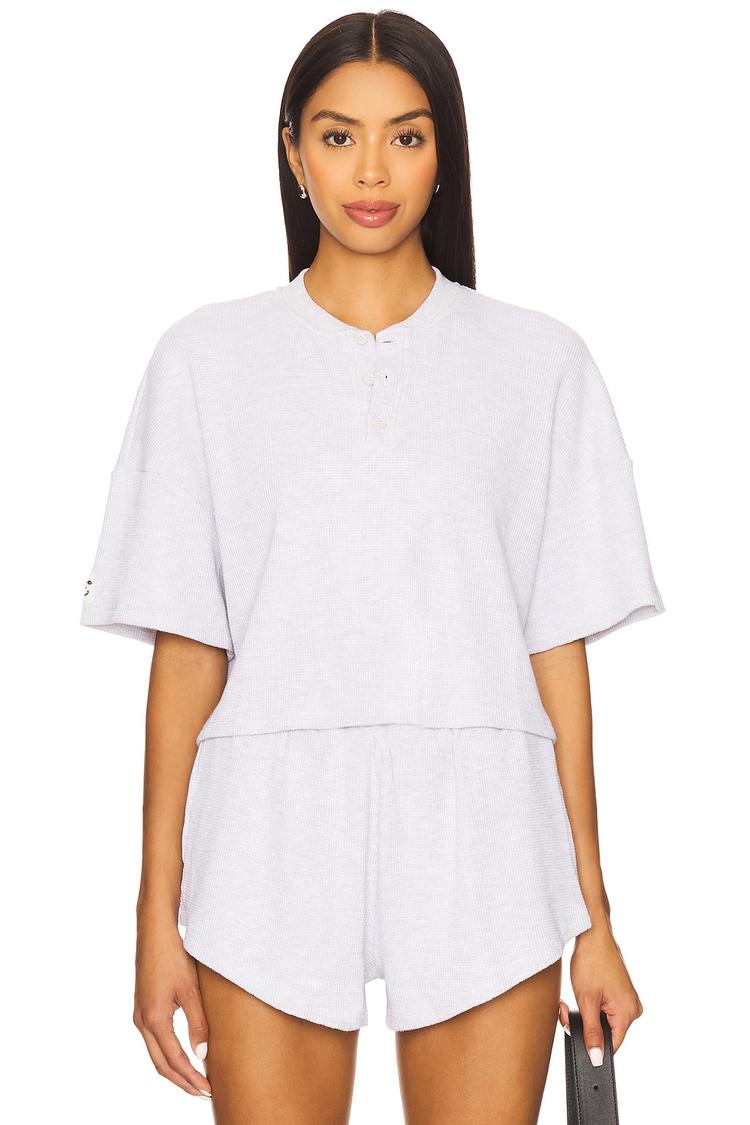 Soft cotton waffle knit meets a relaxed cropped fit in this minimalist Henley top. Featuring half sleeves and a front partial button closure, it offers casual comfort with a ribbed neckline trim that adds subtle texture. The midweight fabric makes it perfect for everyday wear, lounging, or casual outings. Its versatile white hue and clean silhouette blend effortlessly into any casual chic wardrobe, ideal for all weather seasons.