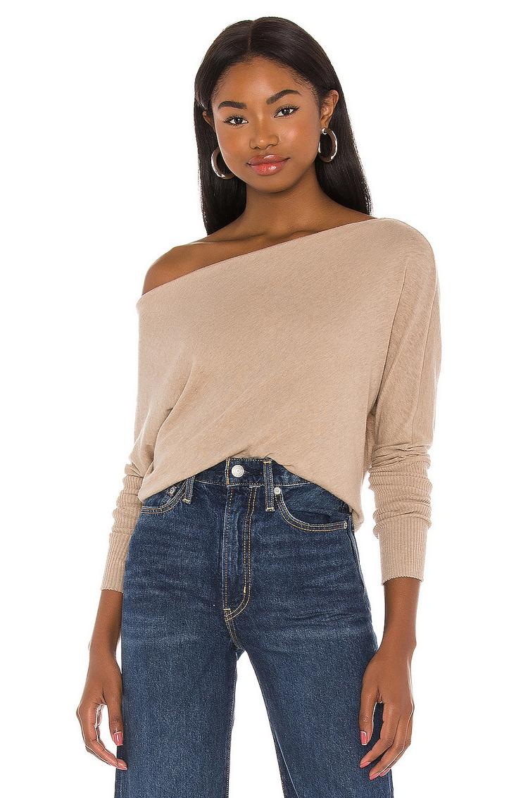 CASHMERE CUFFED OFF SHOULDER LONG SLEEVE TOP