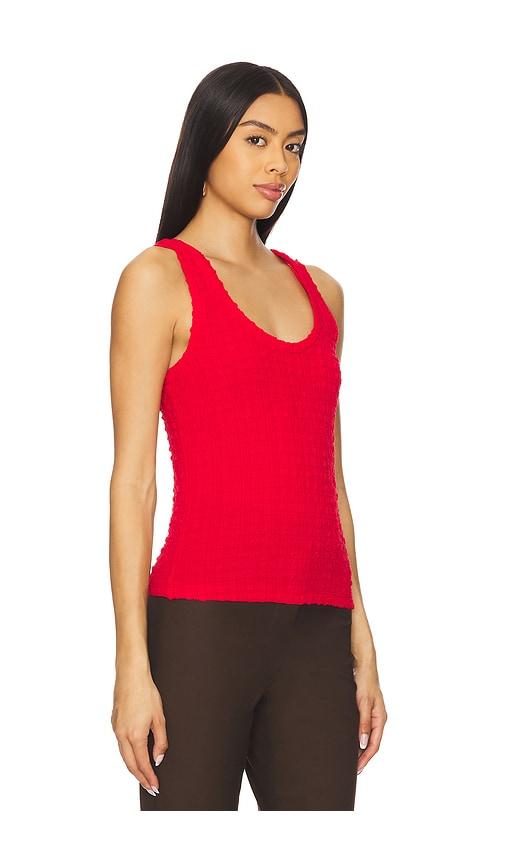 ENZA COSTA PUCKERED TANK TOP IN RED.