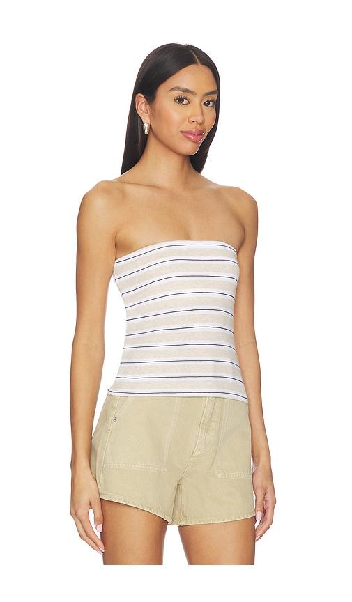 ENZA COSTA STRIPE CLASSIC BANDEAU TOP IN BEIGE.