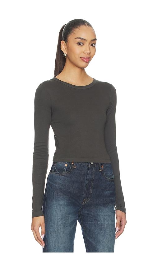 ENZA COSTA SUPIMA BABY RIB LONG SLEEVE CROPPED TOP IN DARK GREY.