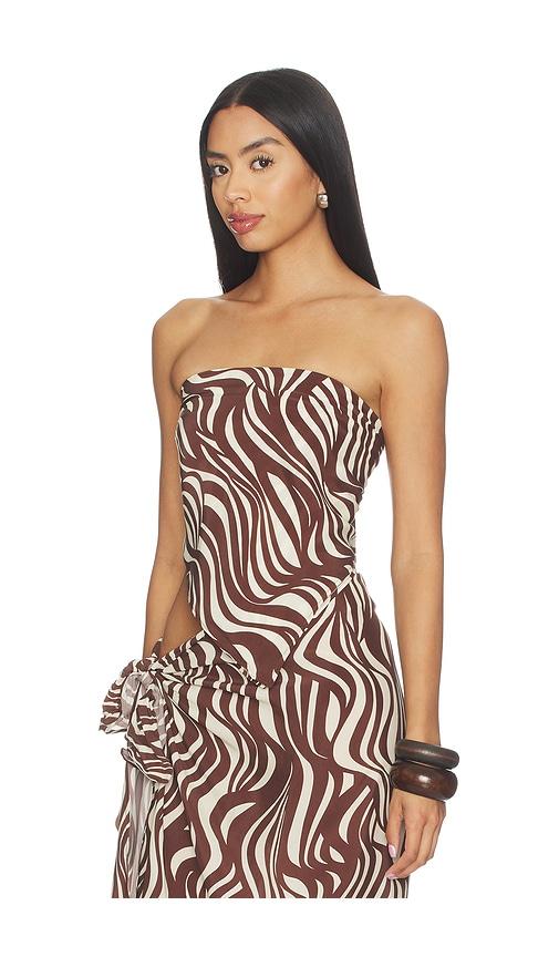 ENZA COSTA WAVE PRINT SCARF TOP IN BROWN.