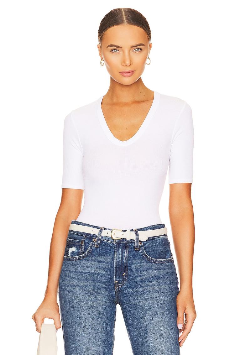 Soft ribbed jersey fabric crafted from a viscose and lycra blend gives this shell top a sleek, fitted silhouette. Featuring a classic V-neck and half sleeves, it offers versatile hip-length coverage that pairs effortlessly with jeans or skirts. Its minimalist design and crisp white hue make it an ideal choice for casual outings, everyday wear, or relaxed work environments. The comfortable stretch fabric ensures ease of movement, while the clean lines emphasize a timeless, casual chic aesthetic perfect for spring through autumn.