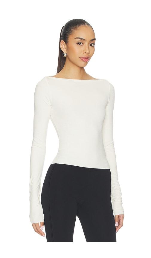 ETERNE LONG SLEEVE BOATNECK TOP IN CREAM.