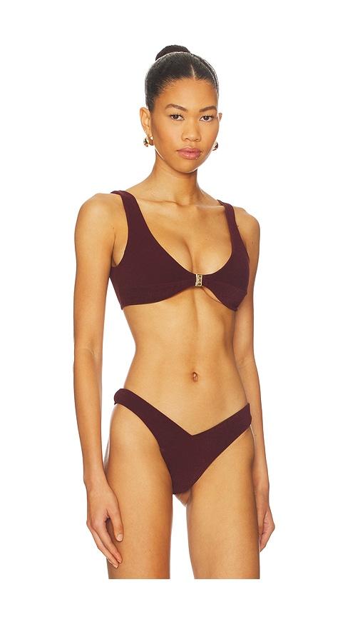 FAE KENDALL TRIANGLE BIKINI TOP IN WINE.