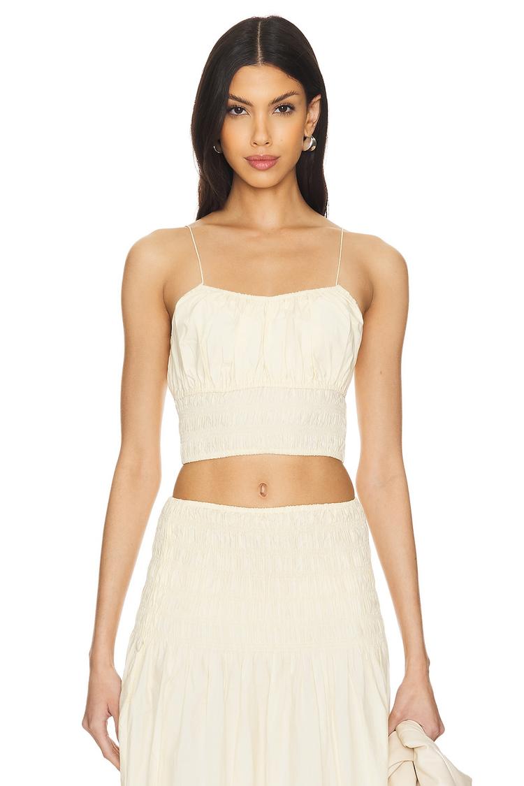 Effortless summer sophistication in creamy ivory. The Baia Top, cut from 100% cotton, features a smocked, pull-on bodice for a flattering, stay-put fit. Slim adjustable spaghetti straps frame a straight neckline, while the cropped silhouette pairs beautifully with a flowing skirt or high-rise denim. Breathable, light-weight cotton keeps you cool from morning errands to sunset dinners, and the strappy back adds a modern boho touch. A versatile top that vibes with brunch, beach days, or vacation evenings—dress it up with woven jewelry or keep it casual for everyday ease.