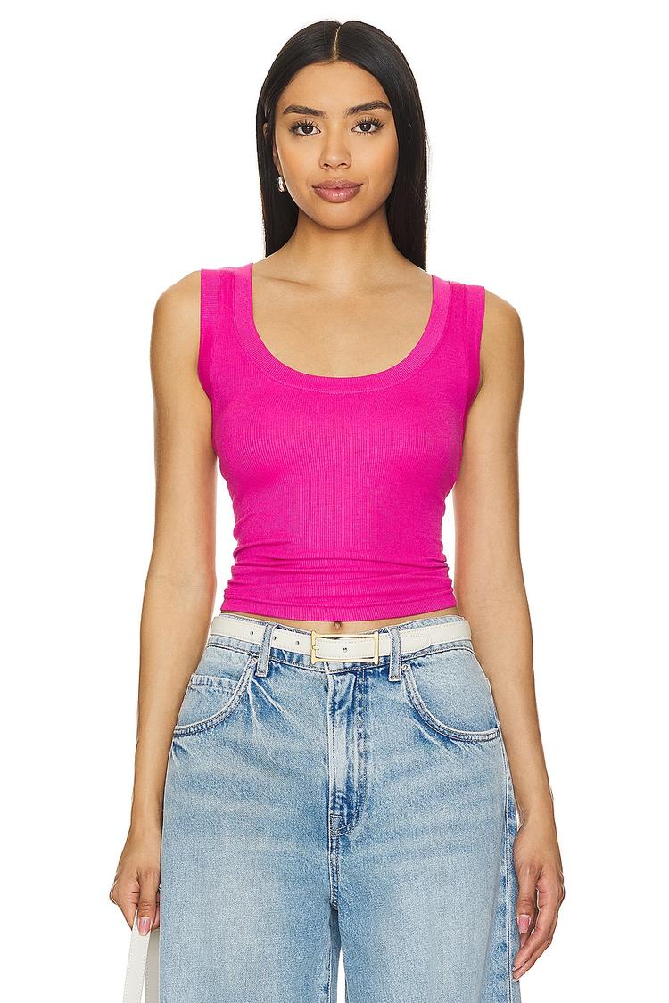 Bright and essential, The Ribbed Tank in vivid pink is a versatile staple for spring and summer. Crafted in soft, stretchable modal jersey with a touch of elastane, its ribbed texture creates a flattering, close fit. The scoop neckline and sleeveless silhouette offer clean, feminine lines, while the waist-length hem pairs effortlessly with high-rise jeans or a skirt. Pullover styling keeps it simple to wear, layer-friendly, and perfect for casual days, brunch, or laid-back work looks. A minimalist piece that elevates everyday outfits with effortless chic and comfortable stretch.