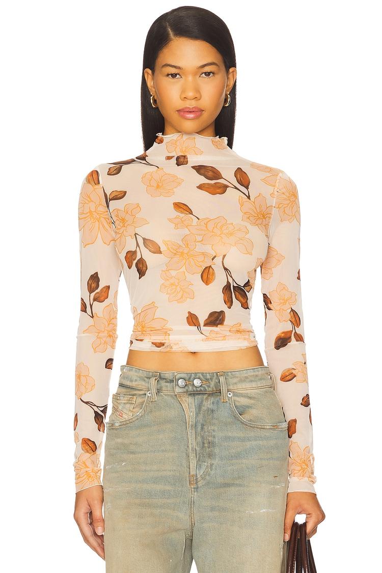 Lightweight mesh and a slim fit create an airy yet figure-flattering silhouette with this cropped sheer top. Featuring a chic turtle neck and long sleeves, its floral pattern in soft cream and brown tones offers a modern, trendy vibe perfect for casual days, brunch meetups, or night outs. The pullover design adds effortless wearability, while the sheer fabric adds a touch of bold sophistication for layering or statement styling across seasons.