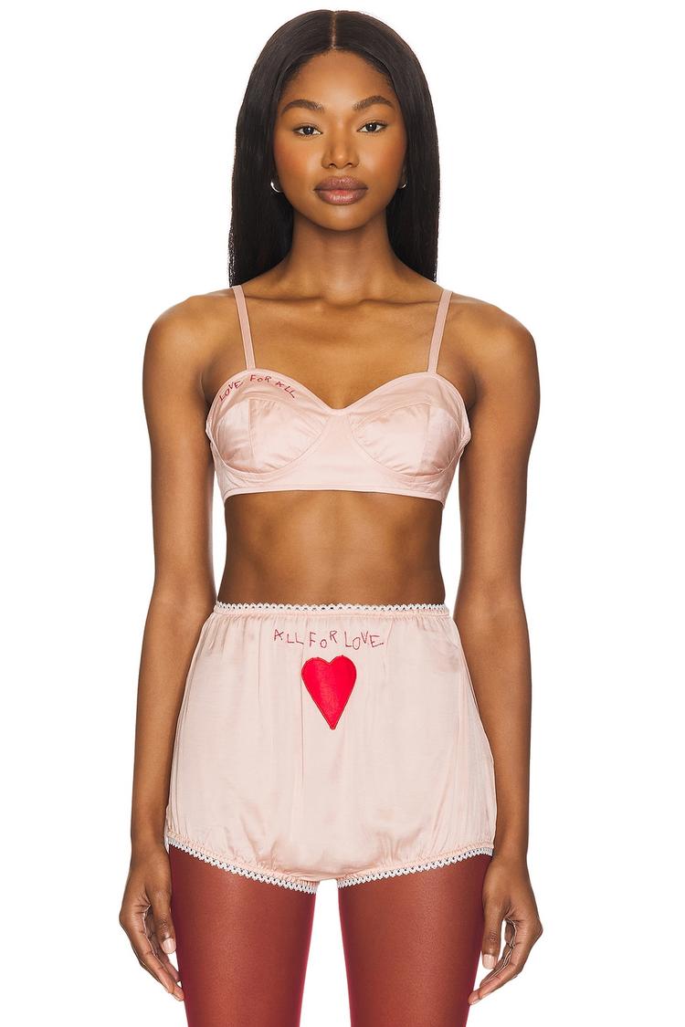 Delicate satin fabric with a soft shimmer in dusty pink frames this fitted bralette featuring a sweetheart neckline and adjustable spaghetti straps for a perfect fit. The cropped length and back hook closure add comfort and ease, while the bold red embroidered heart applique on the front adds a playful, romantic touch. Ideal for loungewear, sleepwear, or casual days, this piece blends minimalist charm with cute detailing, making it a versatile addition to your intimate apparel collection.