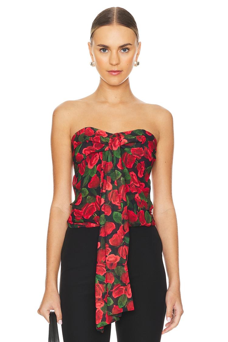 Ruched sateen fabric shapes this fitted corset top with a straight, strapless neckline and an exposed back zipper closure. The vibrant red and green floral print on a matte black base adds a bold, trendy vibe to the waist-length silhouette. Crafted from stretchy polyester and elastane, it offers a flattering fit perfect for spring and summer nights out, date nights, or girls night events. This chic corset blends sexy design with modern detailing, making it a standout piece for evening occasions and stylish social gatherings.