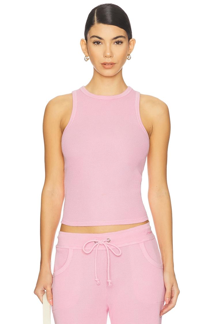 Soft waffle knit fabric and a fitted silhouette define this Emma Thermal Tank Top in a fresh pink hue. Featuring a classic crew neckline and wide straps, this cropped tank offers a sleek, minimalist look that pairs effortlessly with casual or loungewear styles. Ideal for spring through autumn, its breathable cotton-spandex blend provides comfort and stretch for travel days, relaxed weekends, or layering under jackets for business casual settings. The clean design and cropped length make it a versatile staple for everyday wear.