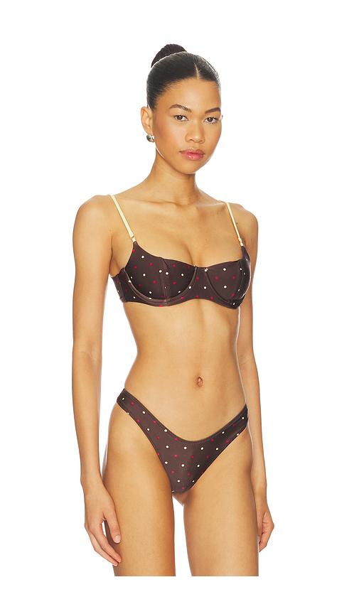 FRANKIES BIKINIS COLA SATIN TOP IN BROWN,LEMON.