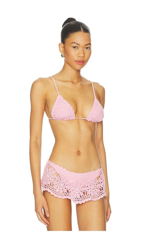 FRANKIES BIKINIS ELENA CROCHET BIKINI TOP IN PINK.