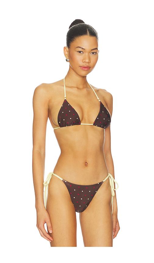 FRANKIES BIKINIS NICK SATIN TOP IN BROWN,LEMON.