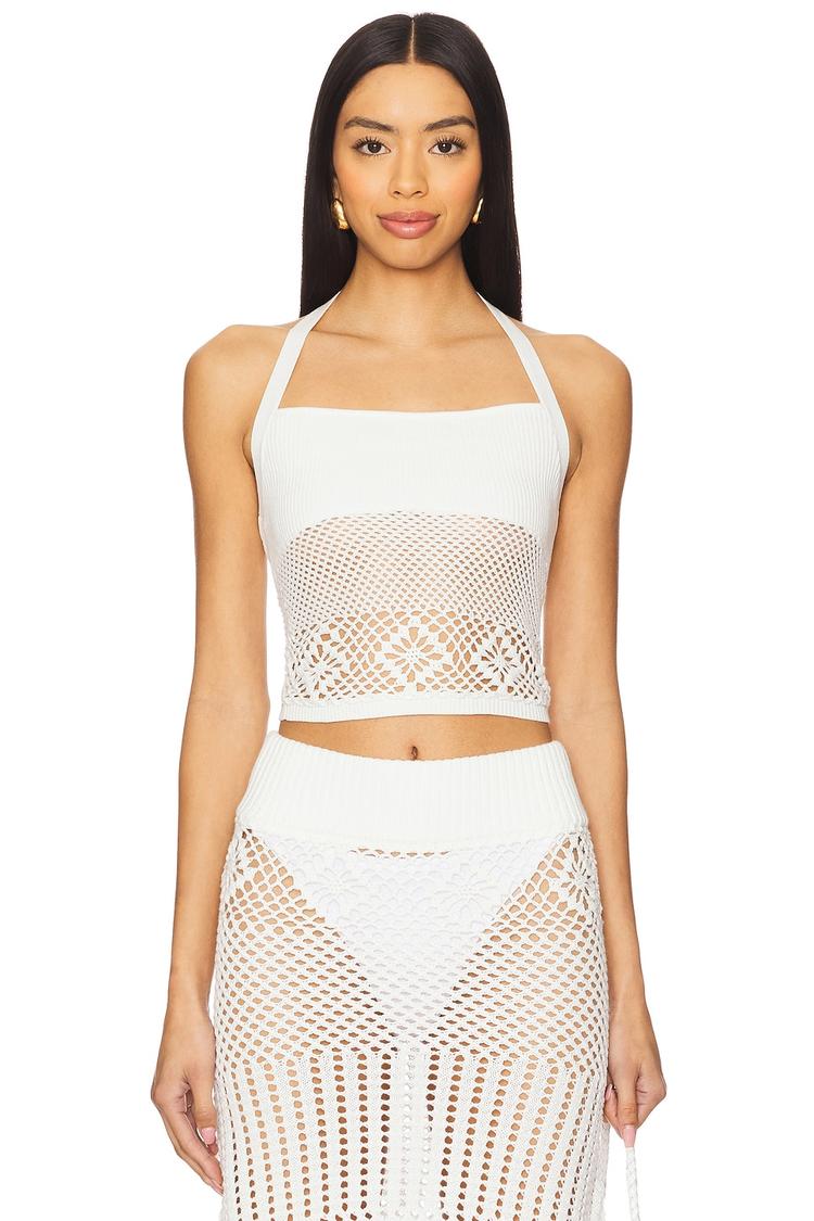 Lightweight crochet fabric and a fitted silhouette define this cropped halter top, perfect for warm-weather days. The halter neck with a tie-back closure adds a breezy, beach-ready vibe, while the sleeveless design enhances comfort and style. This versatile top pairs effortlessly with skirts or shorts, ideal for casual outings, vacations, or beachwear. Combining bohemian charm with casual chic appeal, it delivers a relaxed yet stylish look for spring and summer seasons.