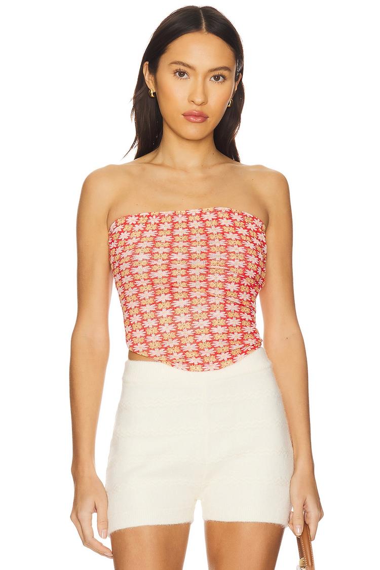 A vibrant red floral tube top crafted from midweight mesh fabric offers a fitted silhouette that flatters your shape. This strapless, sleeveless piece features a nonstick silicone trim to ensure a secure fit, ending at waist length for easy pairing with shorts or skirts. Perfect for sunny spring and summer days, its bohemian and casual chic vibe makes it ideal for casual outings, brunch dates, or beach vacations. Embrace effortless style with this trendy, breathable top that combines comfort with a playful floral design.