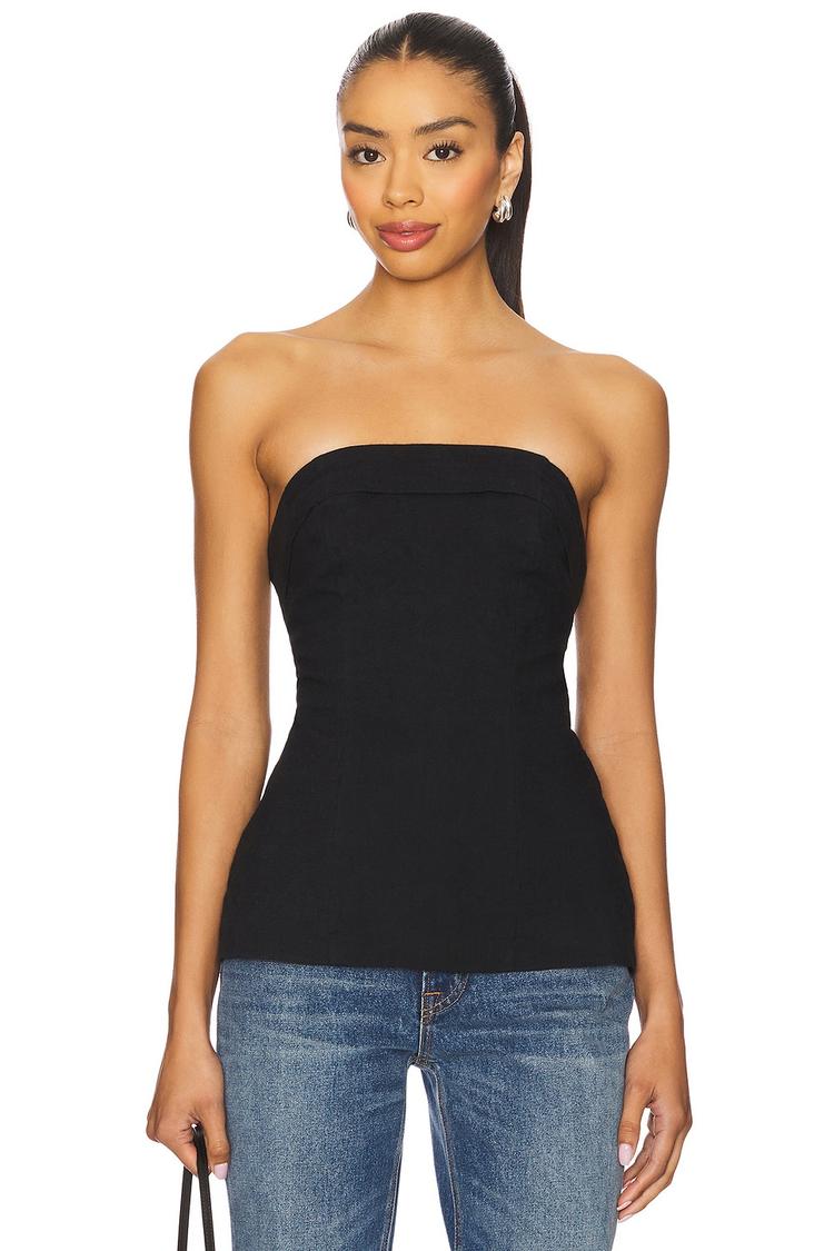 A sleek matte black tube top crafted from midweight linen, featuring a fitted silhouette that flatters the waist. The strapless design highlights a straight neckline, while the standout tie-back with adjustable buckle straps adds a chic, minimalist edge. Ideal for spring and summer, this versatile top suits casual outings, brunch dates, and night events, combining breathable fabric with a secure non-slip silicone neckline for comfort and style.