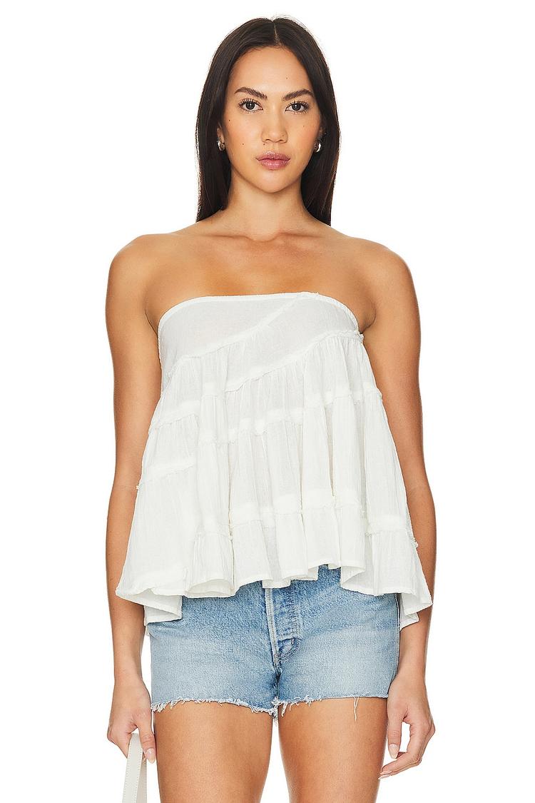 Soft cotton fabric and a strapless neckline create a breezy, loose fit swing top with flared styling and ruffle details all over. This hip-length top offers versatility for casual outings, weekend brunches, and vacation days. The interior drawstring closure ensures a custom fit while the covered back provides comfortable coverage. Embrace effortless summer style with this modern boho-inspired piece that pairs perfectly with denim shorts or skirts for an easy, chic look.