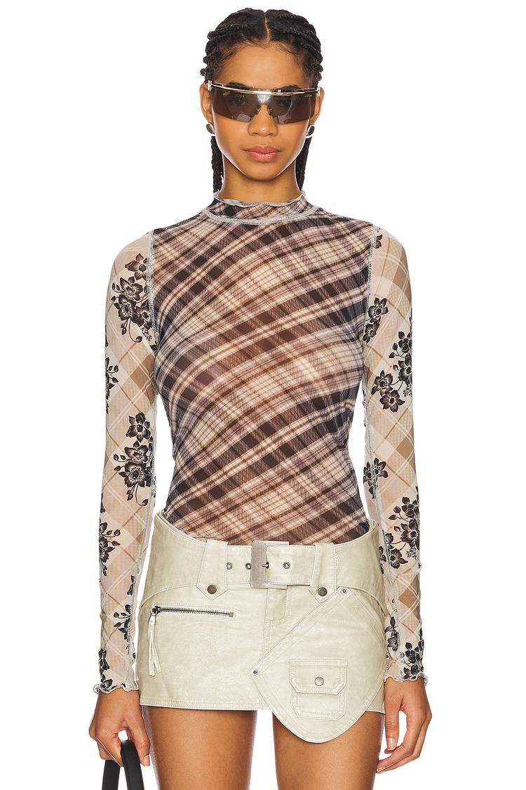 A chic blend of plaid and floral prints defines this slim-fitting shell top with long regular sleeves and a high neckline. Crafted from lightweight nylon mesh, its semi-sheer fabric adds a trendy, breathable layer perfect for spring and autumn outings. The hip-length silhouette and pullover style offer effortless wearability, making it ideal for casual weekends, streetwear looks, or brunch dates. The covered back and delicate print placement create a balanced design that elevates everyday style with bohemian and casual chic vibes.