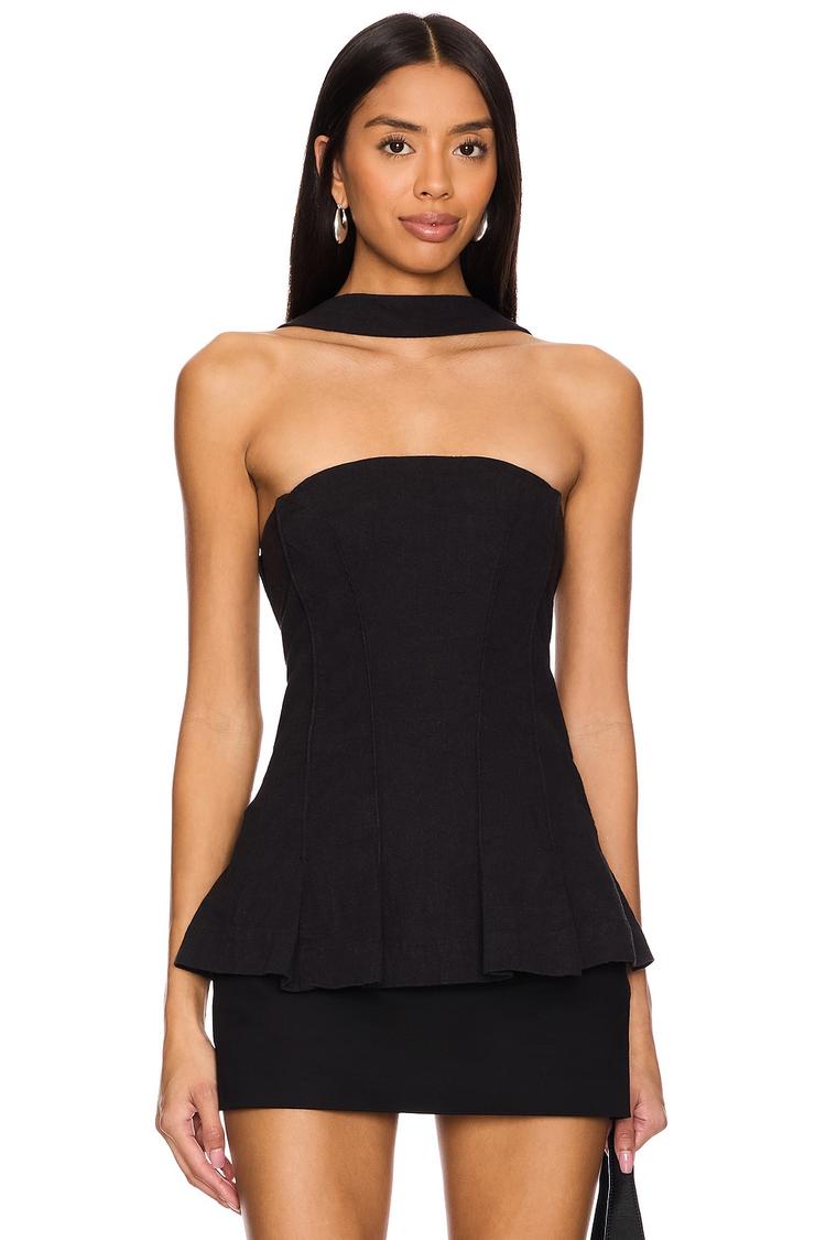 A sleek black tube top crafted from a midweight crepe blend of cotton, linen, rayon, and spandex offers a fitted silhouette that flatters the figure. Featuring a strapless neckline and sleeveless design, it includes a smocked back detail for added comfort and style. Falling to hip length, this modern, chic piece is perfect for spring and summer occasions such as casual outings, brunch dates, or night outs. Its minimalist design and breathable fabric combine elegance with ease for versatile wear.