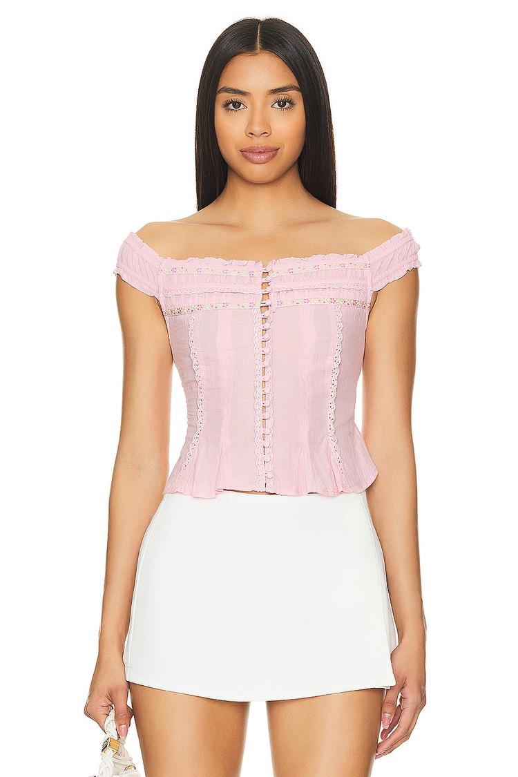 Feel the soft romance of warm-weather days with the Free People x REVOLVE Sweet As Pie Top. This pale pink, off-shoulder cotton beauty is cropped and fitted, featuring slender vertical seam lines that evoke a corset silhouette and a delicate peplum-like hem for flirty movement. Pullover and breathable, it drapes beautifully while staying comfortable all day. Style it with a white mini for a playful brunch look, or pair with a flowing skirt and sandals for a date-night edge. Effortless boho-chic, perfectly crafted for sunny weekends and warm evenings.