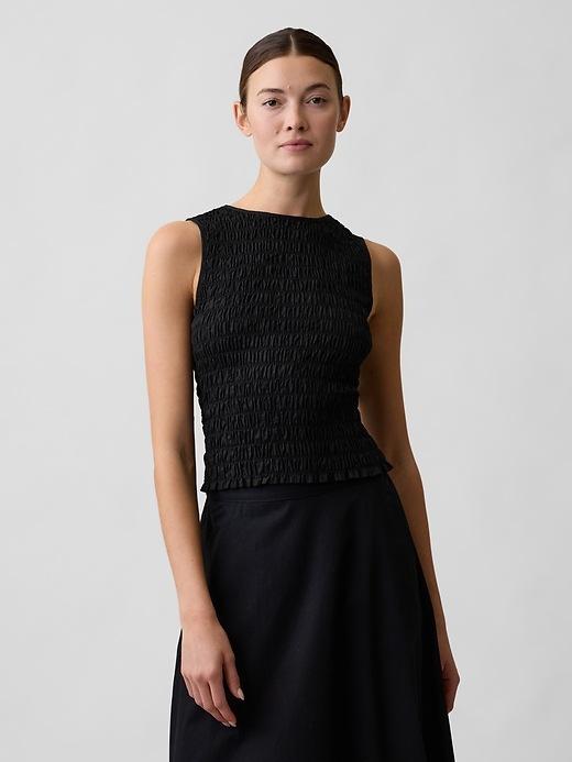 SMOCKED SLEEVELESS BOATNECK TOP