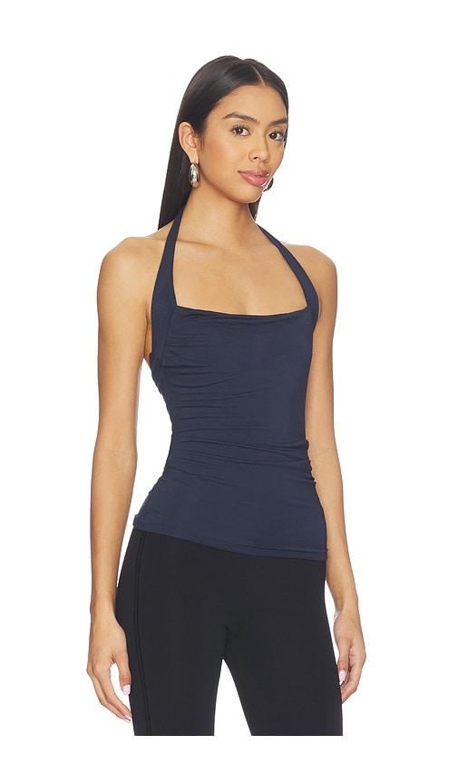 GEEL X REVOLVE ISABELLE HALTER TOP IN NAVY.