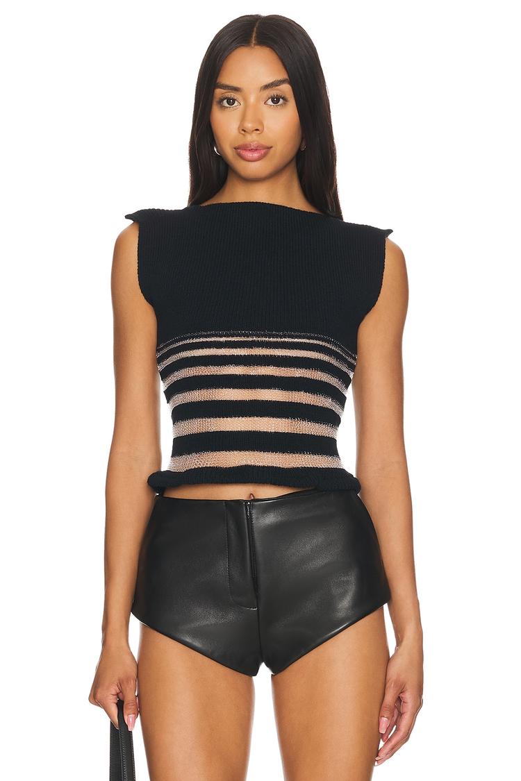 black and sheer stripe top