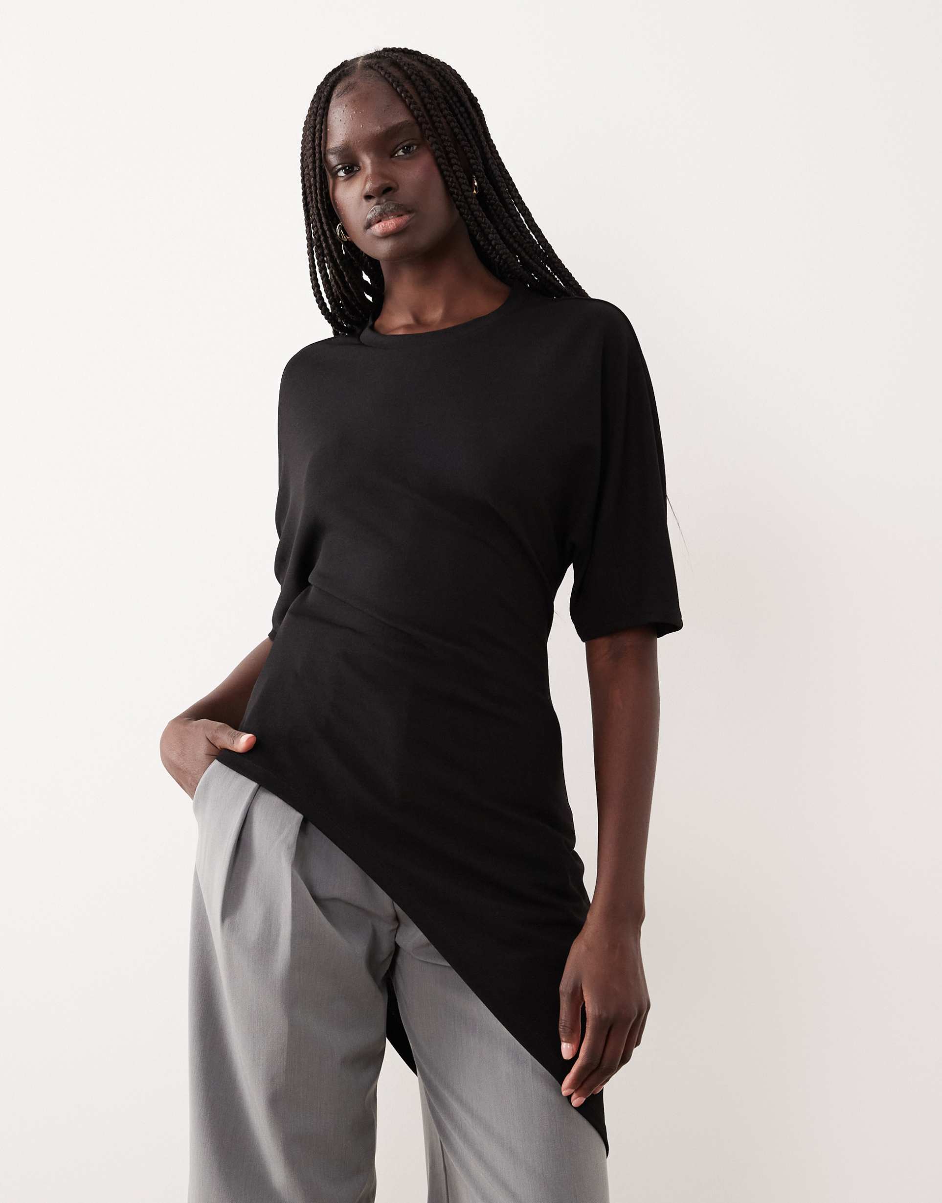 GINA TRICOT SHORT SLEEVE ASYMMETRIC TOP IN BLACK