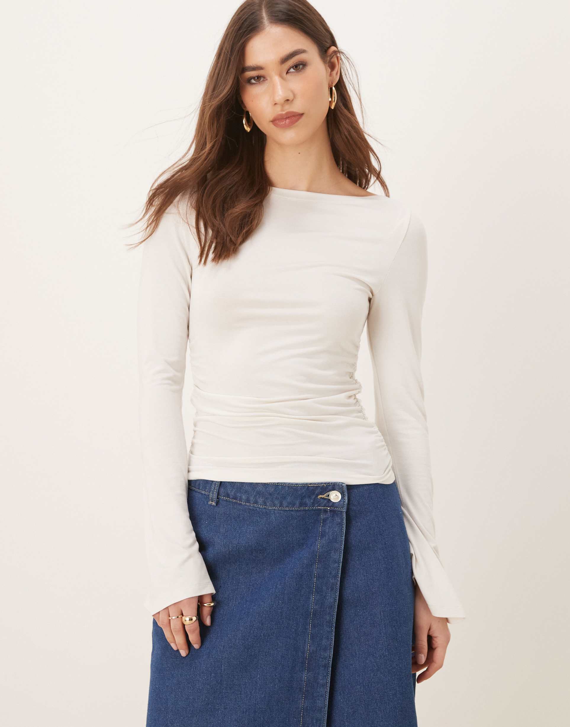 GINA TRICOT SOFT TOUCH LONG SLEEVE BOATNECK TOP IN OFF-WHITE