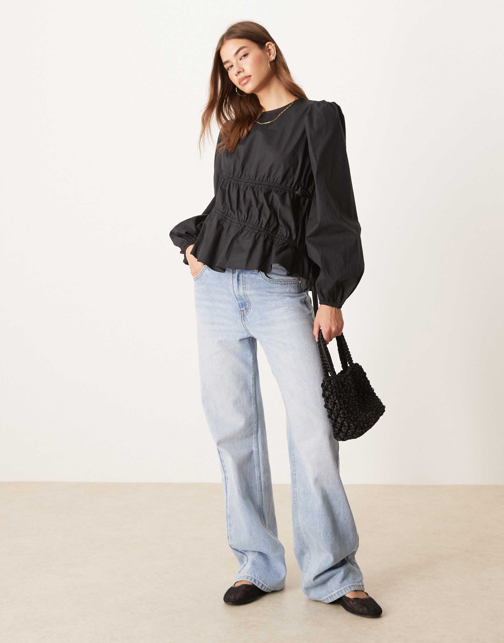 long sleeve shirred top