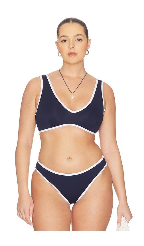 GOOD AMERICAN COMPRESSION DEEP V BIKINI TOP IN NAVY.